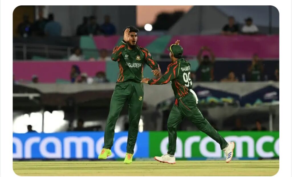 বোলিং: রিশাদ ৩/২২, মোস্তাফিজ ৩/১৭, তাসকিন ২/২৫, তানজিম ১/২৪)