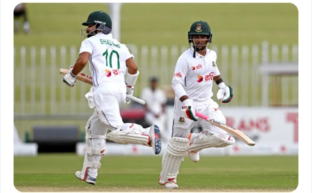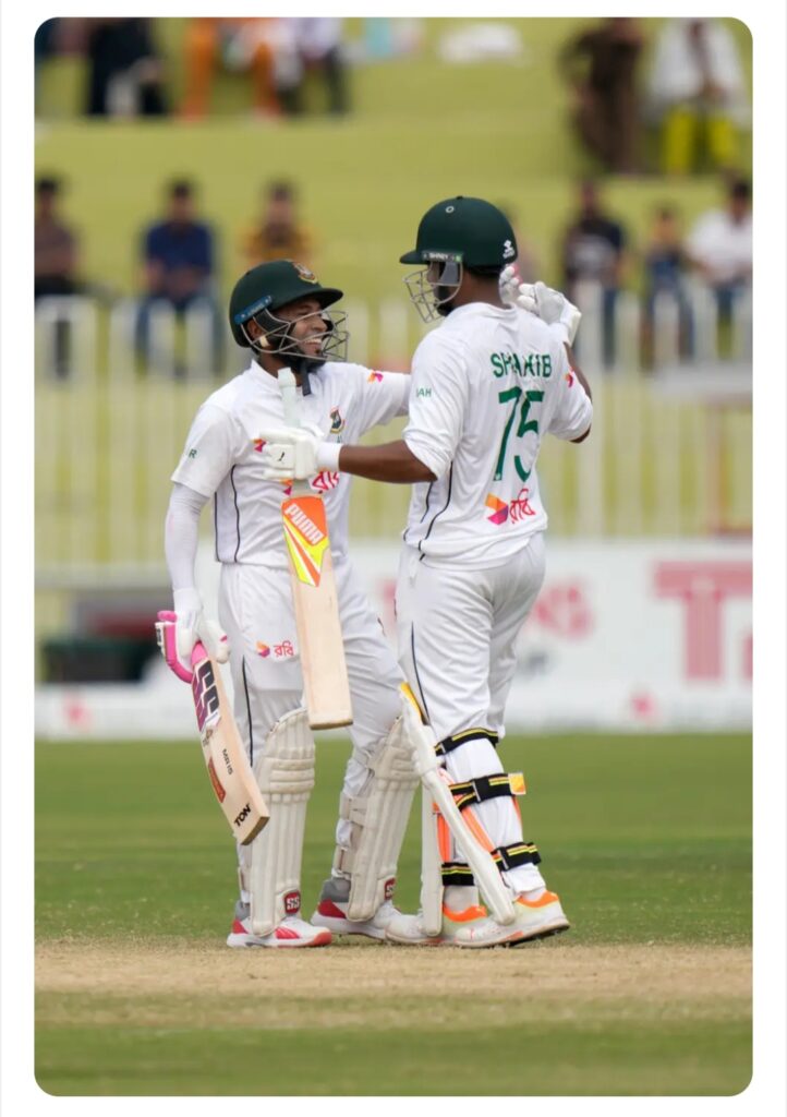 প্রথম ইনিংসে ২৭৪ রানে অলআউট হয় পাকিস্তান। জবাবে লিটন দাসের দুর্দান্ত সেঞ্চুরিতে ২৬২ রানে অলআউট হয় বাংলাদেশ। ১২ রানের লিড নিয়ে দ্বিতীয় ইনিংসে ব্যাট করতে নেমে দুই টাইগার পেসার হাসান মাহমুদ ও নাহিদ রানার বোলিং তোপে ১৭২ রানে অলআউট হয় স্বাগতিকরা। বাংলাদেশের সামনে টার্গেট দাঁড়ায় ১৮৫ রান।