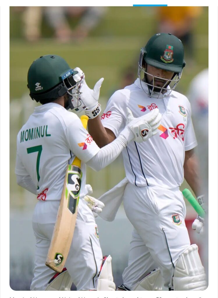 এরপর ক্রিজে আসা মুমিনুলকে সঙ্গে নিয়ে দিনের শুরু ধাক্কা সামাল দেওয়ার চেষ্টা করেন শান্ত।