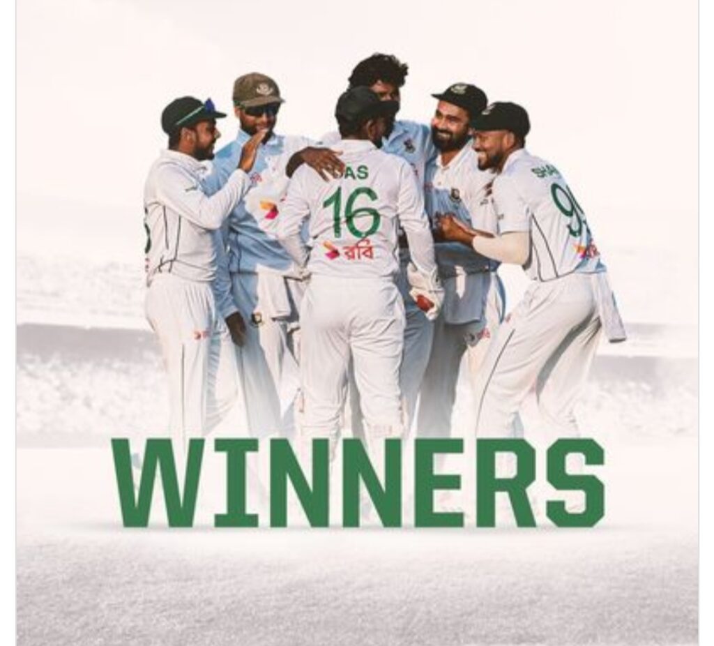 জুমাস ডেস্ক: চলমান টেস্ট সিরিজে পাকিস্তানের রাওয়ালপিন্ডিতে আবারও ইতিহাস গড়ল বাংলাদেশ। টেস্টে প্রথমবার পাকিস্তানকে বাংলাওয়াশ করলো টিম টাইগার্স। ইংল্যান্ডকে টপকে টেস্ট চ্যাম্পিয়নশিপের চার নম্বরে এখন নাজমুল হোসেন শান্ত’র দল। শেষ দিন জয়ের জন্য ১৪৩ রান প্রয়োজন ছিল সফরকারীদের। শেষ পর্যন্ত ৬ উইকেট হাতে রেখেই জয় নিশ্চিত করে বাংলাদেশ। এ নিয়ে বিদেশের মাটিতে তৃতীয়বারের মতো টেস্ট সিরিজ জয়ের স্বাদ পেল লাল-সবুজের বাংলাদেশ।