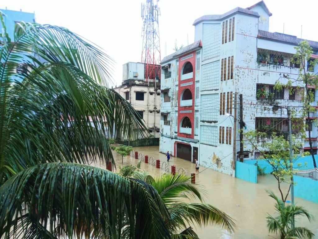 আরও জানা যায়, রোববার রাত ও সোমবার সকালে ২৫৩ মিলিমিটার বৃষ্টিপাতে তলিয়ে গেছে নগরের উপশহর, মেন্দিবাগ, মাছিমপুর, তেরোরতন, সাদারপাড়, সোবহানীঘাট, যতরপুর, কুশিঘাট, তালতলা, জামতলা, মণিপুরি রাজবাড়ি, জিন্দাবাজার, চৌহাট্টা, পায়রা, দরগামহল্লা, মুন্সীপাড়া, হাওয়াপাড়া, নাইওরপুল, সোনারপাড়া, বালুচর, মীরের ময়দান, কাষ্টঘর, পুলিশ লাইনস, কেওয়াপাড়া, সাগরদিঘিরপার, খাসদবির, কলাপাড়া, মজুমদারপাড়া, লালদিঘিরপার ও মেজরটিলা এলাকা মধ্যরাতের বৃষ্টিতে জলমগ্ন হয়ে পড়েছে।